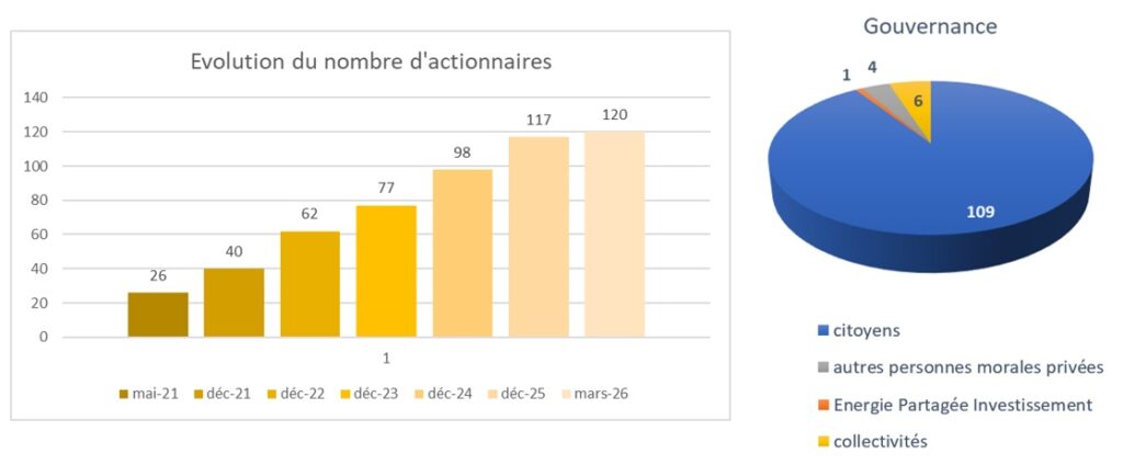 Au 1er novembre 2025, sur nos 108 actionnaires, 84 sont des citoyens qui résident dans le Pays ALO. Regardez où en est votre commune ! Rejoignez-nous !